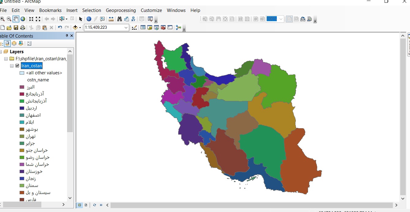 نقشه Polygon کلیه استان های کشور بر اساس آخرین تقسیمات استان با فرمت shapefile قابل استفاده در نرم افزار های تخصصی ARCGIS